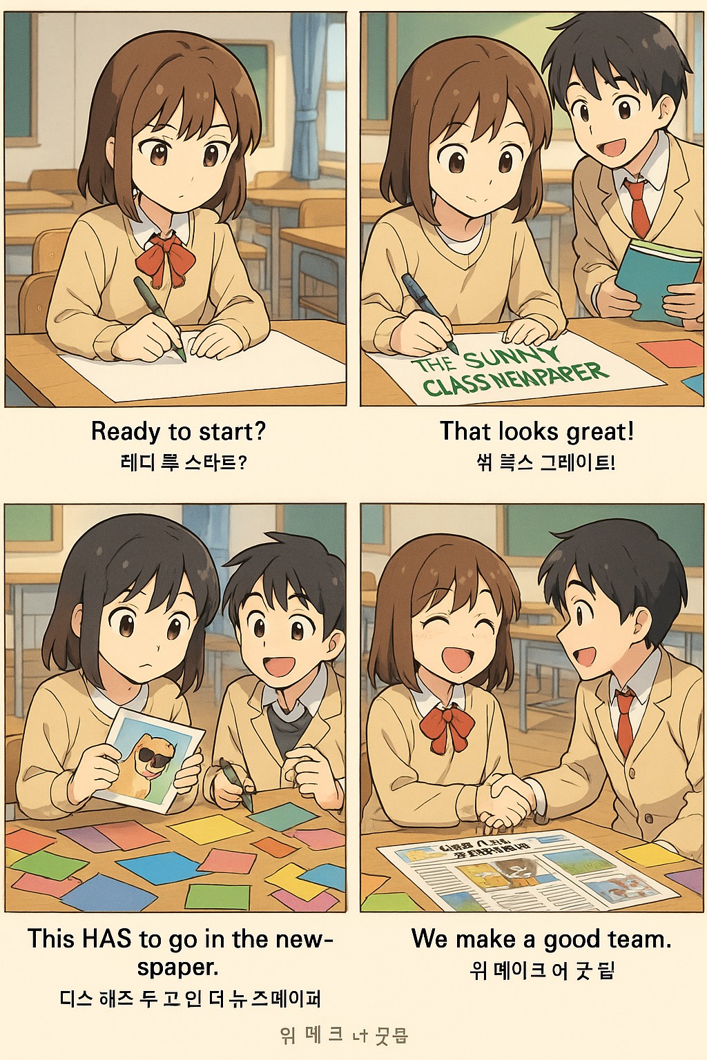 Today, she and Hyunil had to make the class newspaper together.