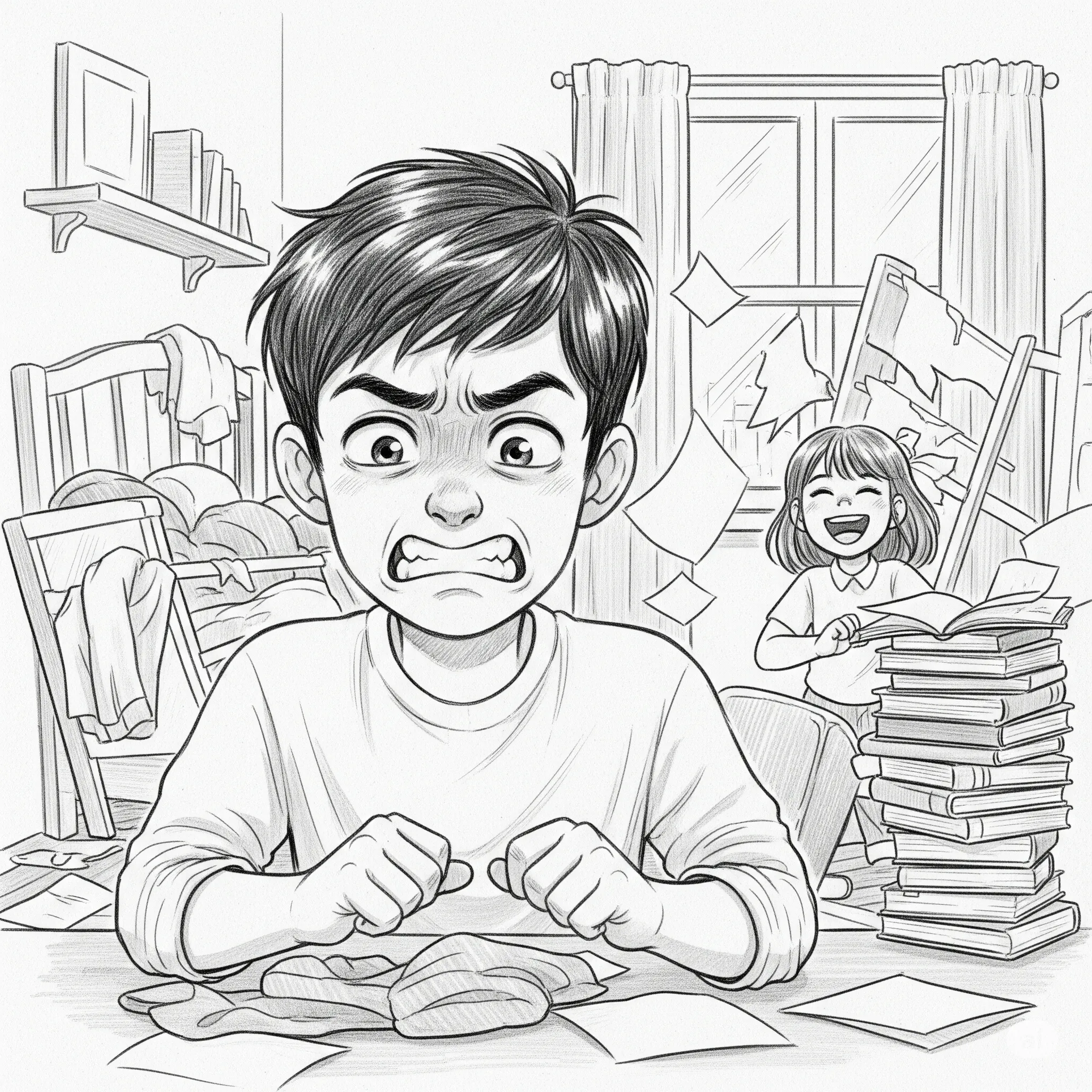 My sister went back to her room angrily. Mom told me, “You were bad too! Don’t fight like that!” I felt so sad. It was like Mom was on my sister’s side. I wanted to cry out. I sat in my room and tears came to my eyes. My sister was so mean, and Mom didn’t understand me.