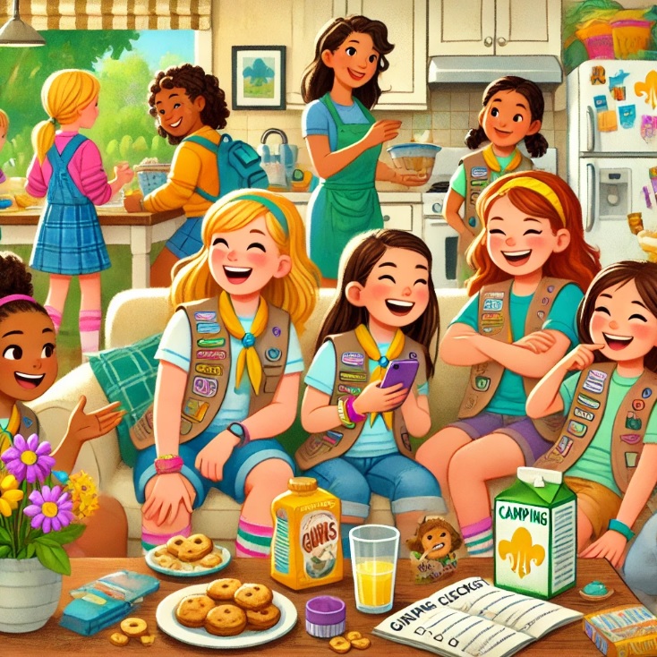 "Did you hear about our next Girl Scouts camping trip?" asked Mia, excitedly opening up a bag of chips.