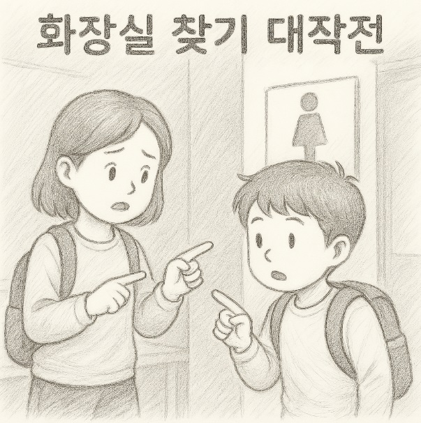 “네! 화장실을 찾고 있어요.” 지민이가 말했어요.