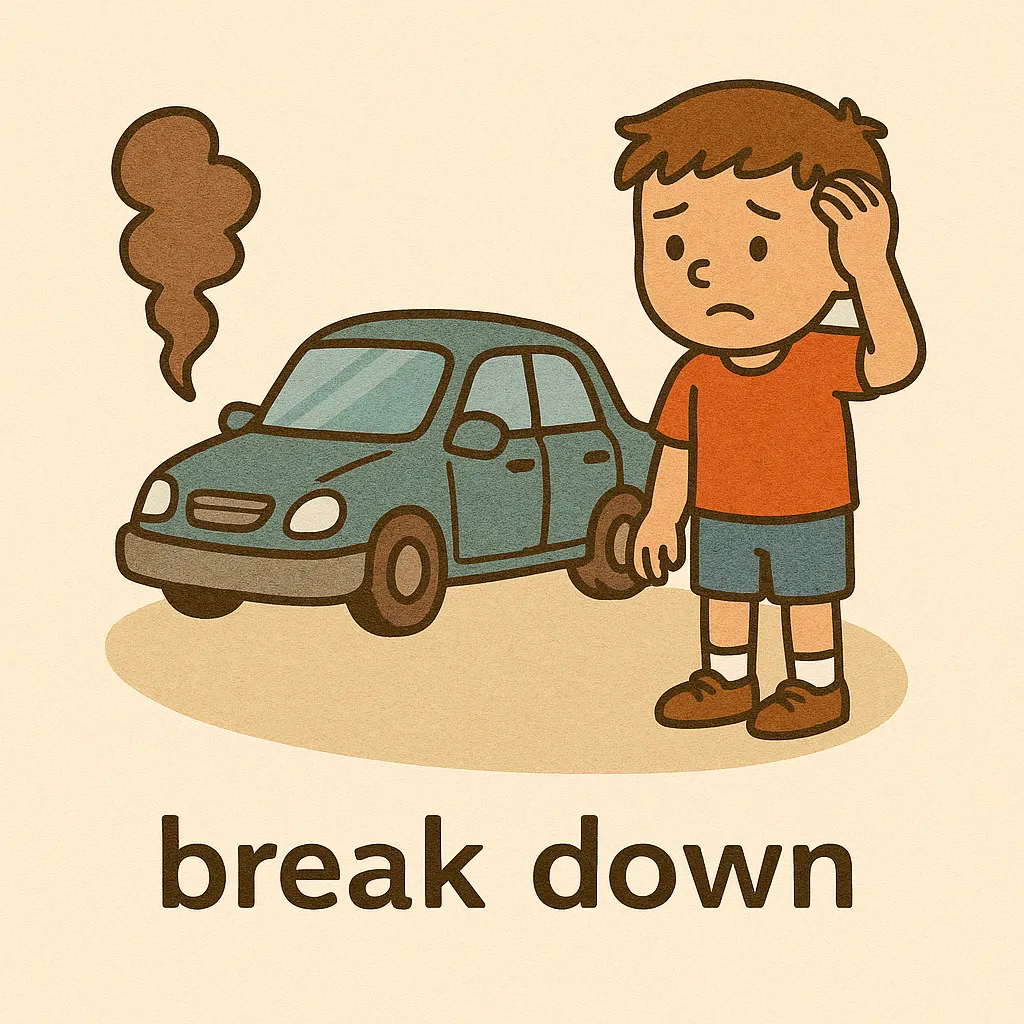 40 break down 고장 나다, 무너지다 The car broke down on the way.