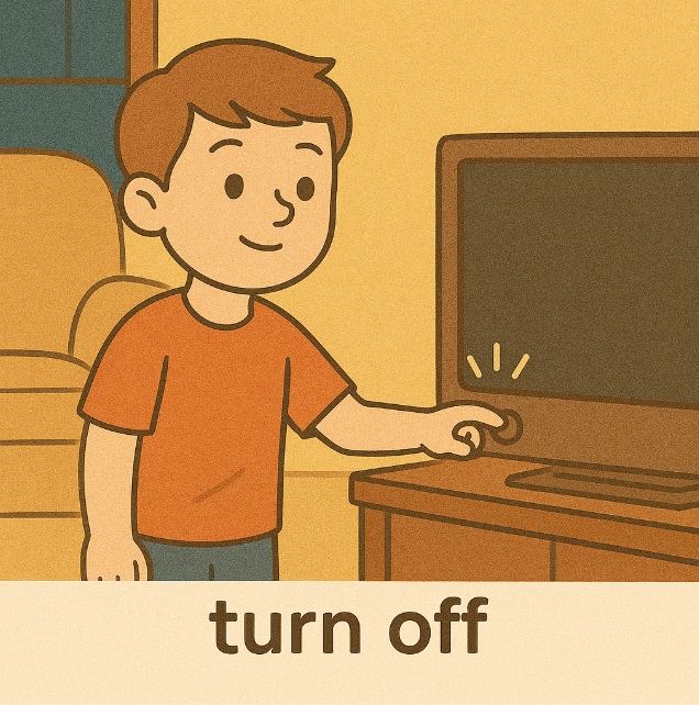 6 turn off 끄다 Turn off the TV.