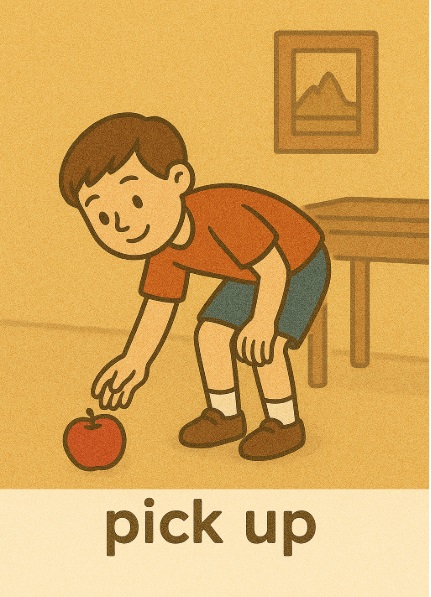 pick up 집다, 줍다 Pick up your pencil.