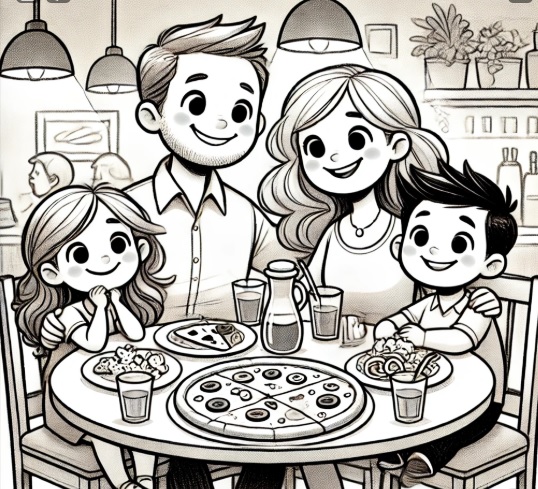 Hello! My name is Anna. Today, my family and I are going out for dinner. I am very happy because we don’t eat out often. My little brother, Max, is also excited. He keeps asking, "Can I eat pizza today? Can I have ice cream too?"
