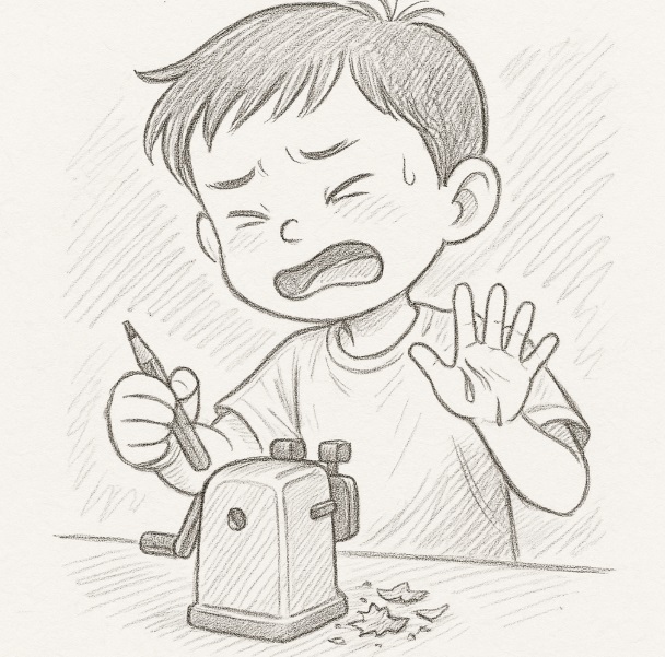 그녀는 연필깎이를 빠르게 돌렸어요.